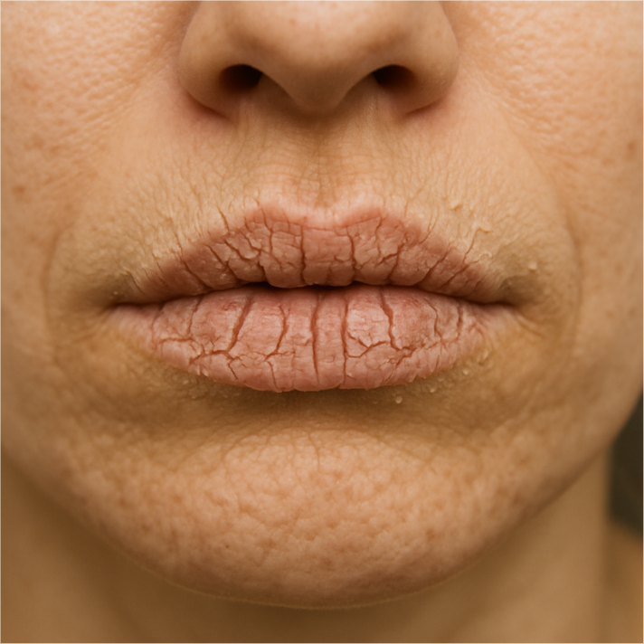 입술은 가장 먼저 갈라지고, 피가 나고, 감염됐습니다.