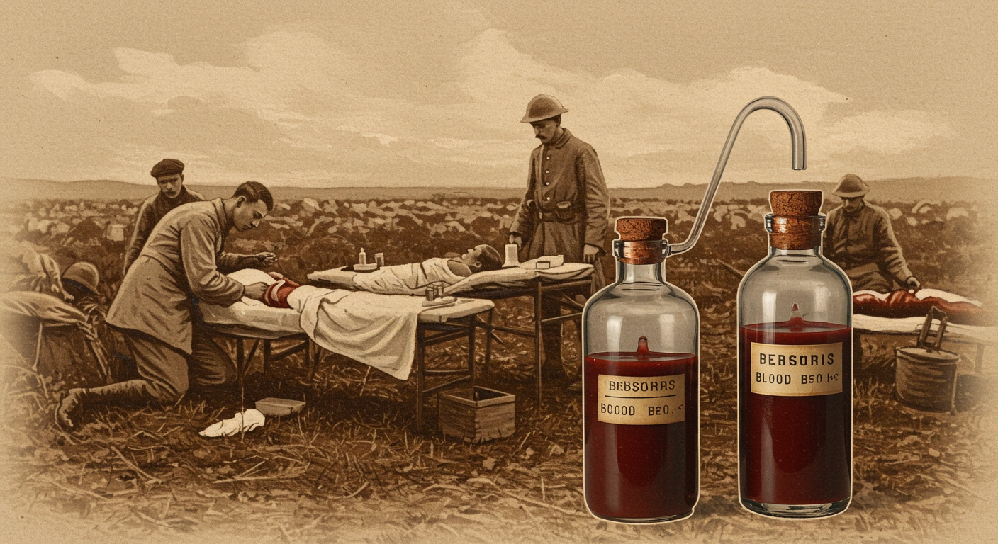 1차 세계대전(1914-1918)은 인류 역사상 가장 잔혹한 전쟁 중 하나로 기록되어 있어요. 수많은 병사들이 부상을 당했고, 그중 많은 이들이 출혈 과다로 목숨을 잃었습니다. 당시에는 피를 즉시 수혈하는 방식 외에는 대량으로 저장할 방법이 없었어요.