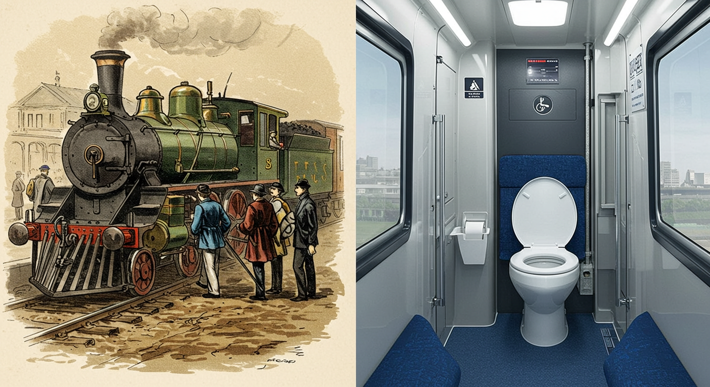 - 초기 기차 여행의 고통: 19세기 중반 기차는 화장실이 없어 장거리 여행 시 큰 불편함과 위생 문제를 겪었습니다.